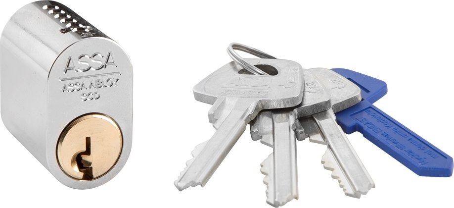 ASSA d12 1201 är en ovalcylinder med kopieringsskydd för innerdörrar samt balkong- och altandörrar och fönsterlås.