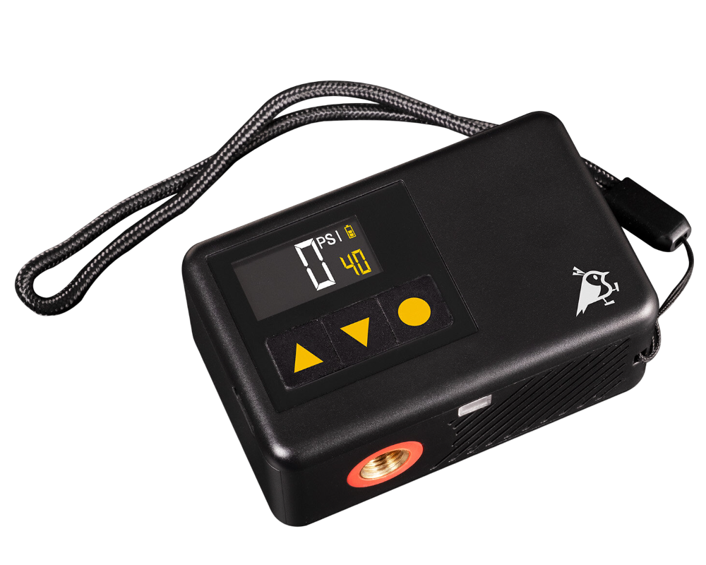 Airbird P1 är en liten, bärbar och batteridriven luftpump. Den levereras med en slang och ventiler för alla vanliga cykeltyper.