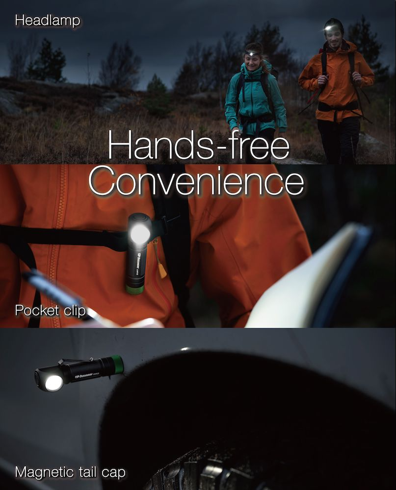 GP Discovery CHR35 är en multifunktionell pannlampa som även går att koppla loss för att få en ficklampa, på kortändan är det ett magnetfäste så du kan sätta fast den vid behov. Detta är definitivt den lampa som du alltid ska ha tillgänglig i bilen eller på campingresan på grund av dess flexibilitet. När du använder den som ficklampa har du även ett smart clips som gör att du kan fästa den i en ögla på textilier, t ex i ett tält eller liknande.
