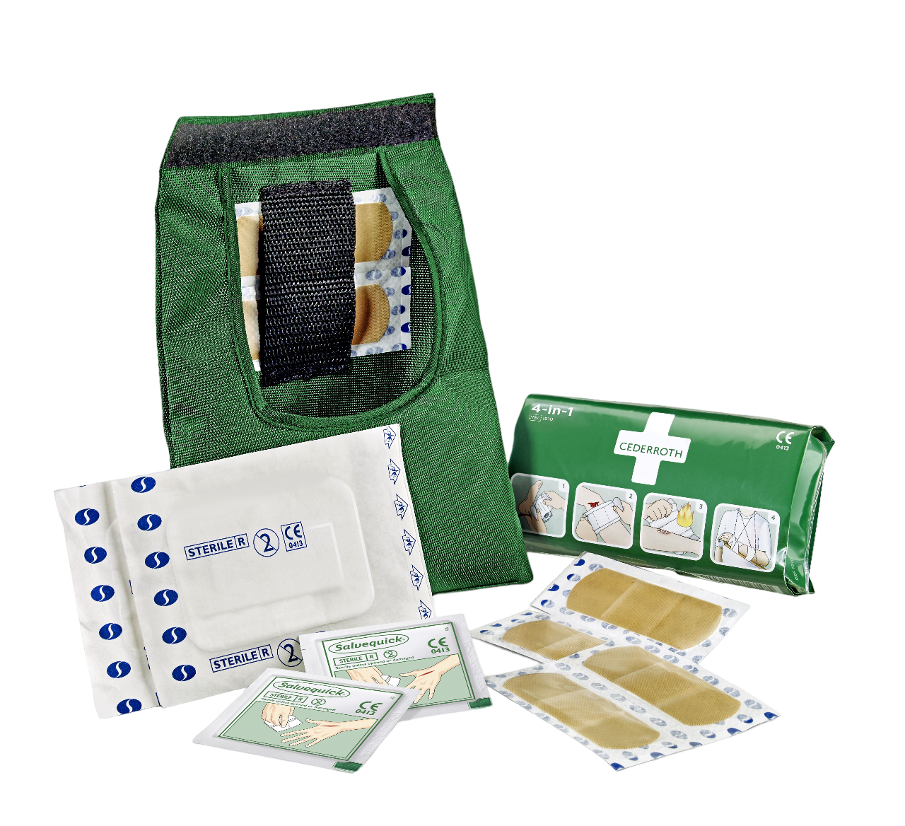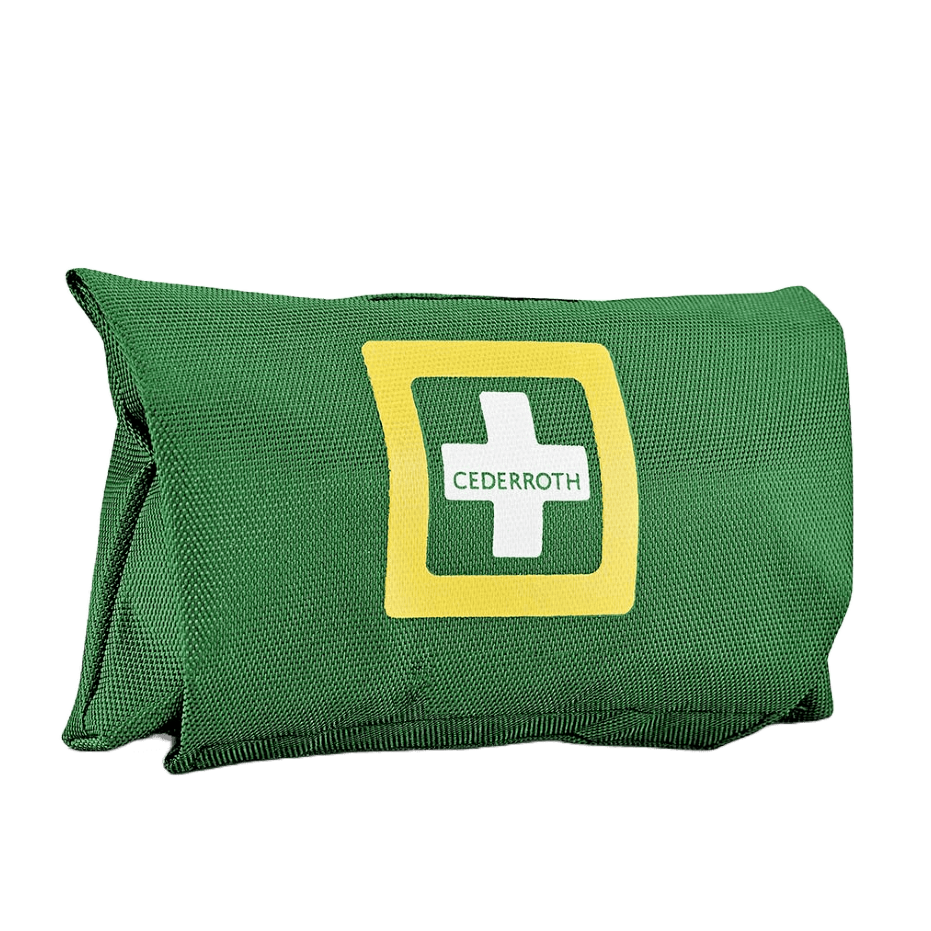 Cederroth Första Hjälpen-väska är en liten och smidig väska i grön nylon med kardborre-stängning. Lätt att ta med.