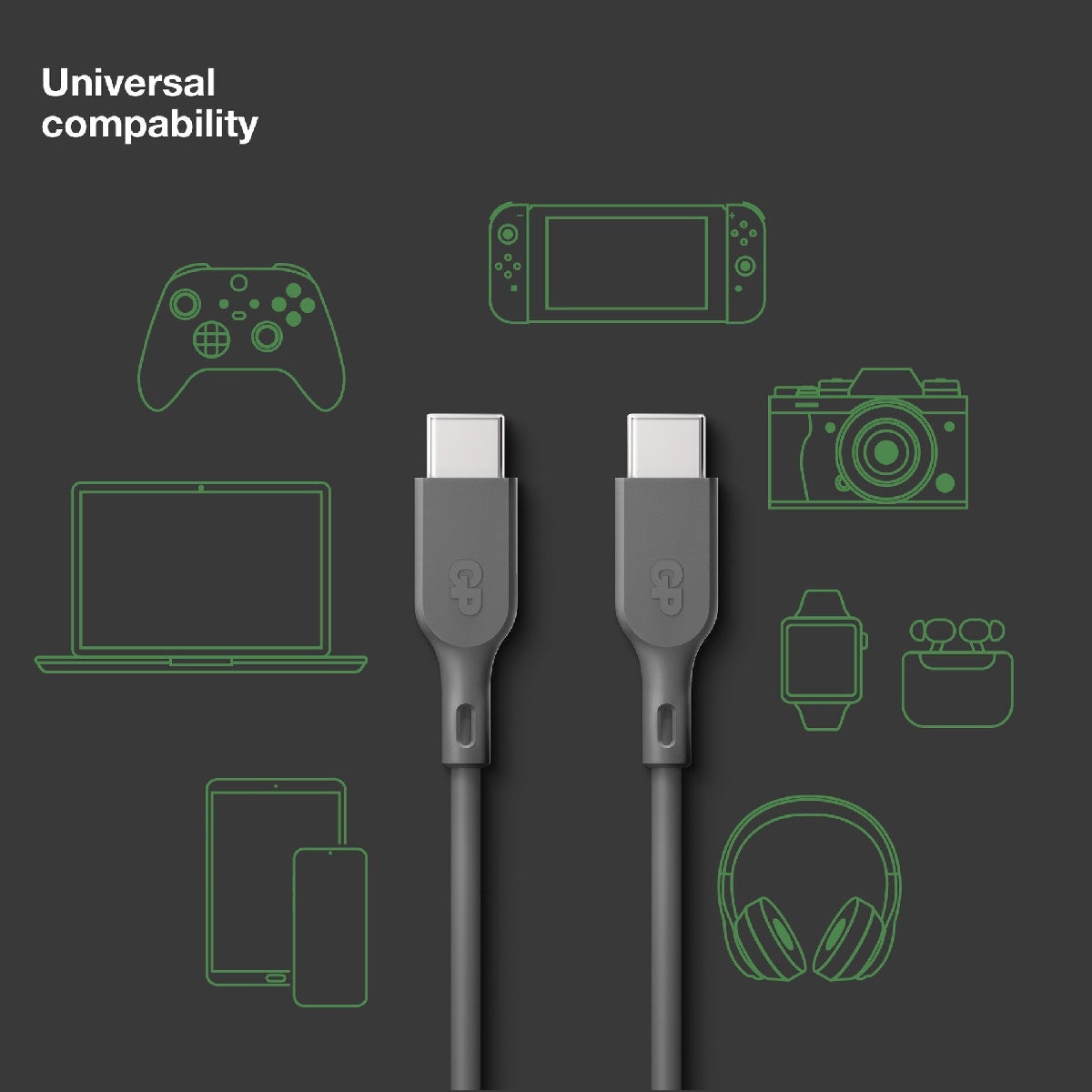 Charge & Sync-kabeln från GP är den perfekta kabeln för daglig användning. Kabeln är tillverkad av böjligt material som gör att den kan sträckas och böjas över 10 000 gånger utan att gå av. Den laddar en smartphone till 50 % på endast 30 minuter.* Med stöd för Quick Charge och PD-laddning med maximal uteffekt på 60 W är den perfekt för en mängd olika applikationer. Kabeln kan användas för 480 Mbps höghastighetsöverföring av alla filtyper så att data kan överföras blixtsnabbt.