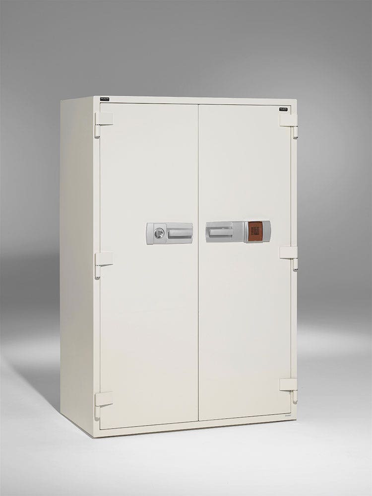 MBG 1820 är en utav Robursafes största modeller av dokumentskåp för brandsäker förvaring i 90 min. av affärshandlingar, bokföringsmaterial, dokument, kontrakt etc. i pärmar eller mappar. Skåpet rymmer totalt 100 pärmar och har 2 st. utdragbara lådor längst ned i skåpet för mindre värdesaker. Skåpet är även utrustat med elektroniskt kodlås.