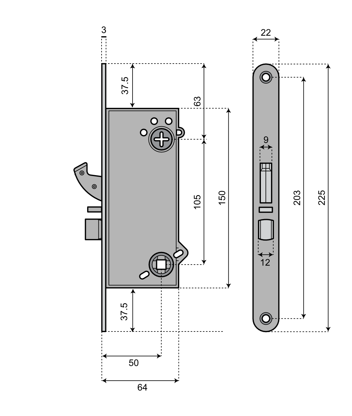 • Mått låshus