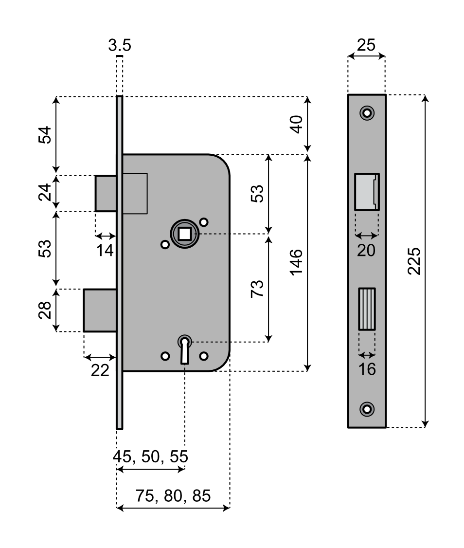 - Låsdjup 85 mmmed dorndjup 55 mm