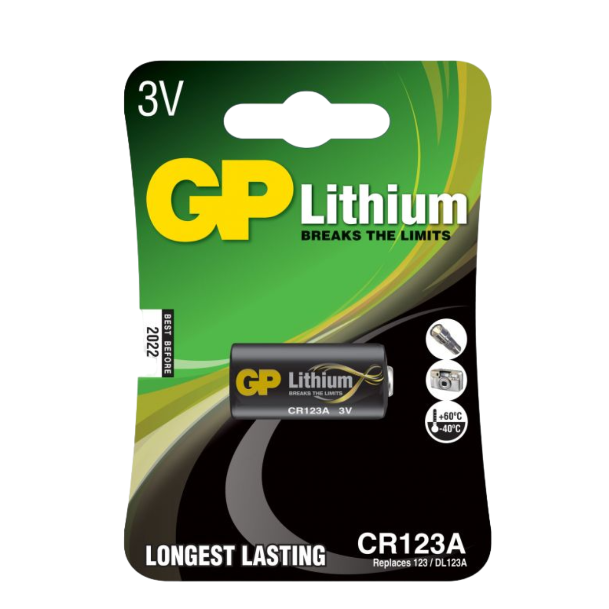 Lithiumbatteri av högsta kvalitet från GP Batteries. De största fördelarna med lithiumbatterier är att de håller hög och stabil prestanda oavsett temperatur (fungerar väl i temperaturer -40° C till +60° C). Lithiumbatterier har även mycket hög energidensitet vilket ger ett kraftfullt batteri med lång livslängd. Jämför man ett lithiumbatteri med ett alkaliskt batteri så ger lithiumbatteriet med kraft och håller längre, men ligger ofta snäppet högre i pris. Lihtiumbatteriet håller också ungefär samma prestanda under hela urladdningscykeln medan ett alkaliskt batteri successivt tappar sin spänning.