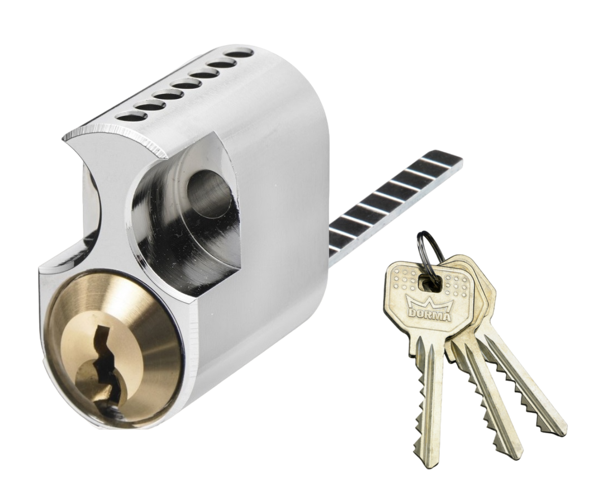 DORMA DC521 är en oval enkelcylinder med lång medbringare, som monteras på insidan av spanjolettdörrar.