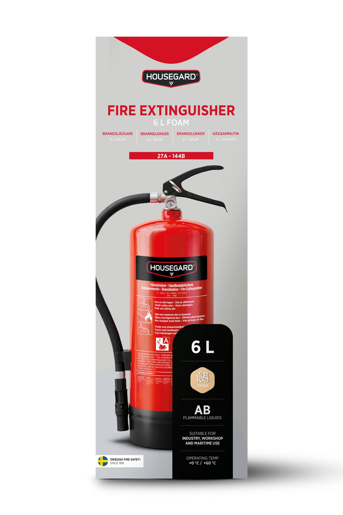 Produktegenskaper för Housegard 6 liter skumsläckare