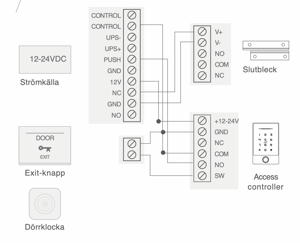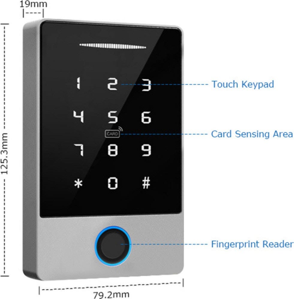 Väggläsaren kan läsa RFID tag (kort och passerbrickor) samt fingeravtryck, kod och mobilapp.
