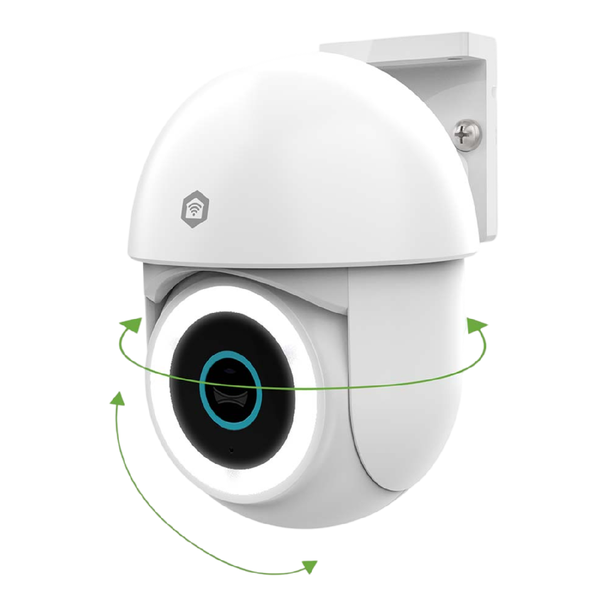 Den här lättanvända smarta utomhus-IP-kameran gör det möjligt att fjärrövervaka stora områden genom att rotera kameran både horisontellt och vertikalt. Du kan även aktivera automatisk spårning så att kameran följer personer eller objekt som rör sig inom synfältet.
