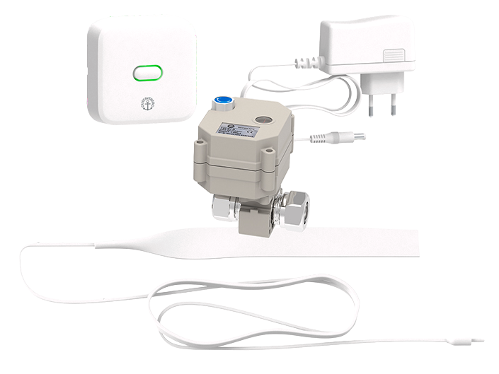 Läckagebrytaren kan styras med Vatette-appen via Wi-Fi, men den fungerar även utan uppkoppling.