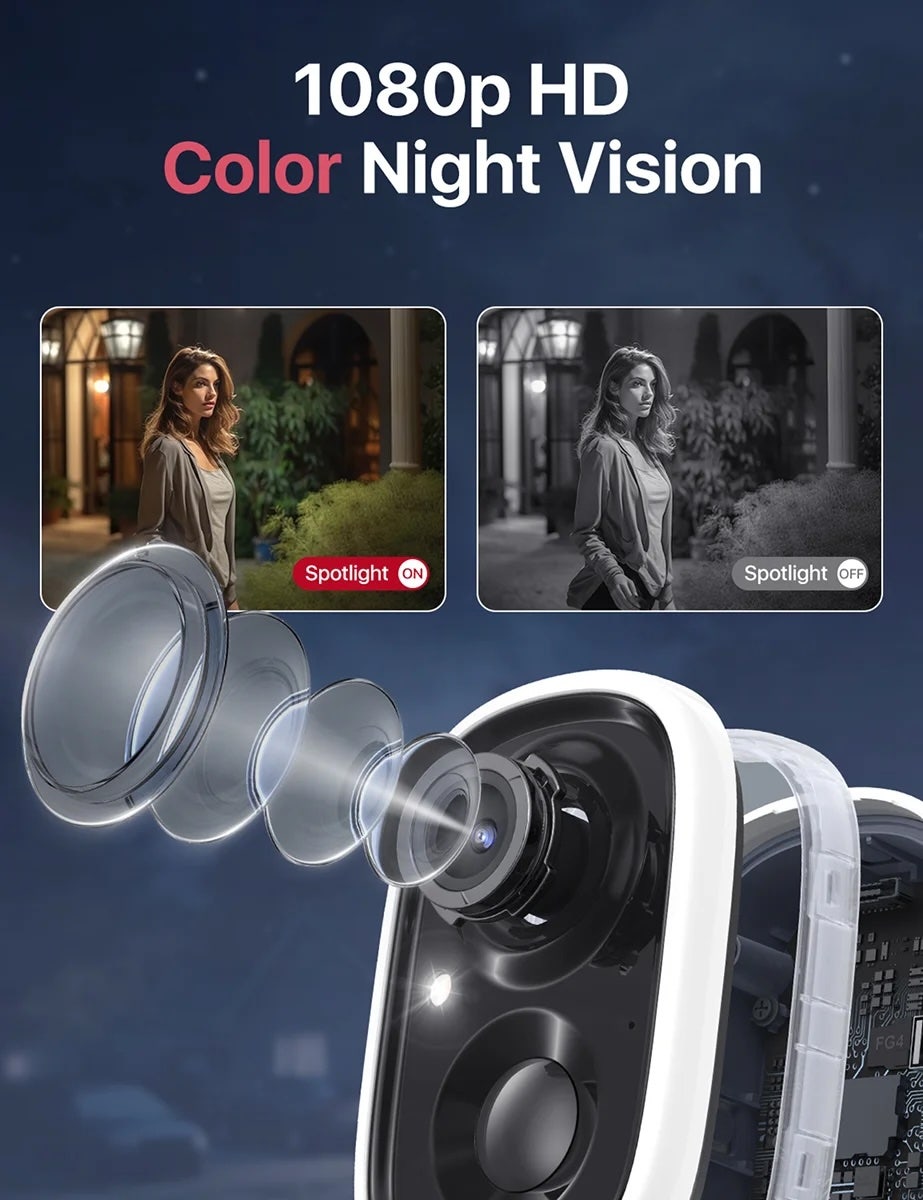 - Inbyggd spotlight-lampa för färgbilder nattetid