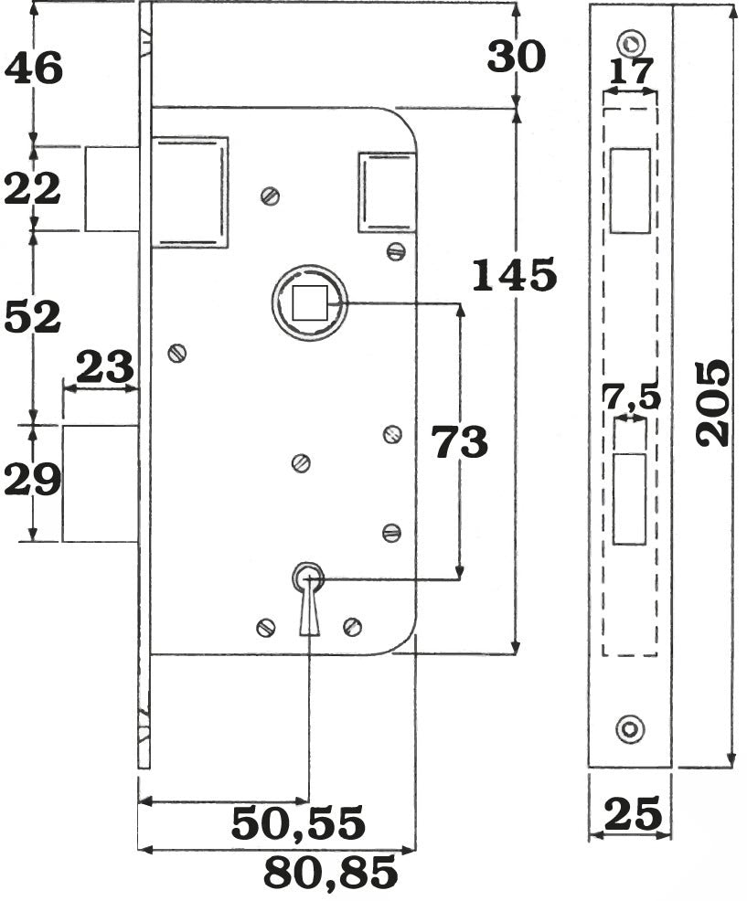 - Låsdjup: 80 eller 85 mm