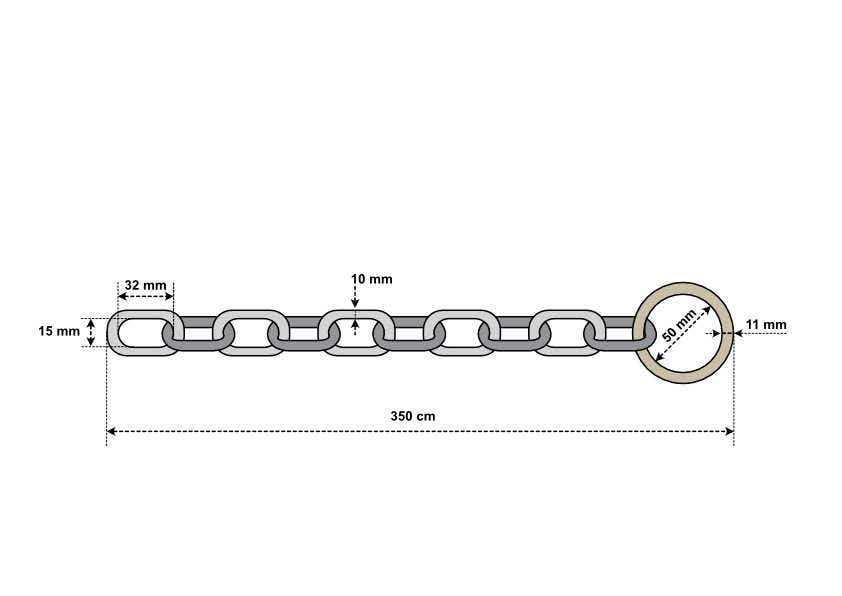 - Länkarna med 10 mm diamter och en fri innerdiameter på 15 x 30 mm